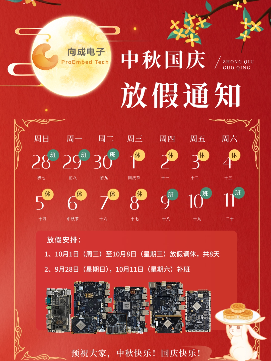 向成電子2025年國慶節及中秋節放假通知